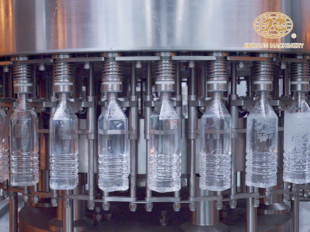 金榮飲料機械廠家制造供應的全套飲料生產線、果汁生產線、碳酸飲料生產線、小瓶礦泉水灌裝設備、大瓶水生產線、桶裝水生產線、純凈水灌裝機設備、瓶裝礦泉水灌裝生產線、易拉罐啤酒灌裝機等系列產品主要運用在純凈水,礦泉水,果汁,茶,熱灌裝飲料,功能飲料,含汽飲料,碳酸飲料,啤酒等液體飲料灌裝生產。其供應的灌裝生產線可配套全自動吹瓶機、水處理設備、前處理設備、飲料殺菌設備、貼標機、包裝機等相關配套機械設備。金榮多年來的設備研發和制造經驗,讓金榮機械為飲料生產企業和水廠等提供了穩定的全套灌裝生產線設備。